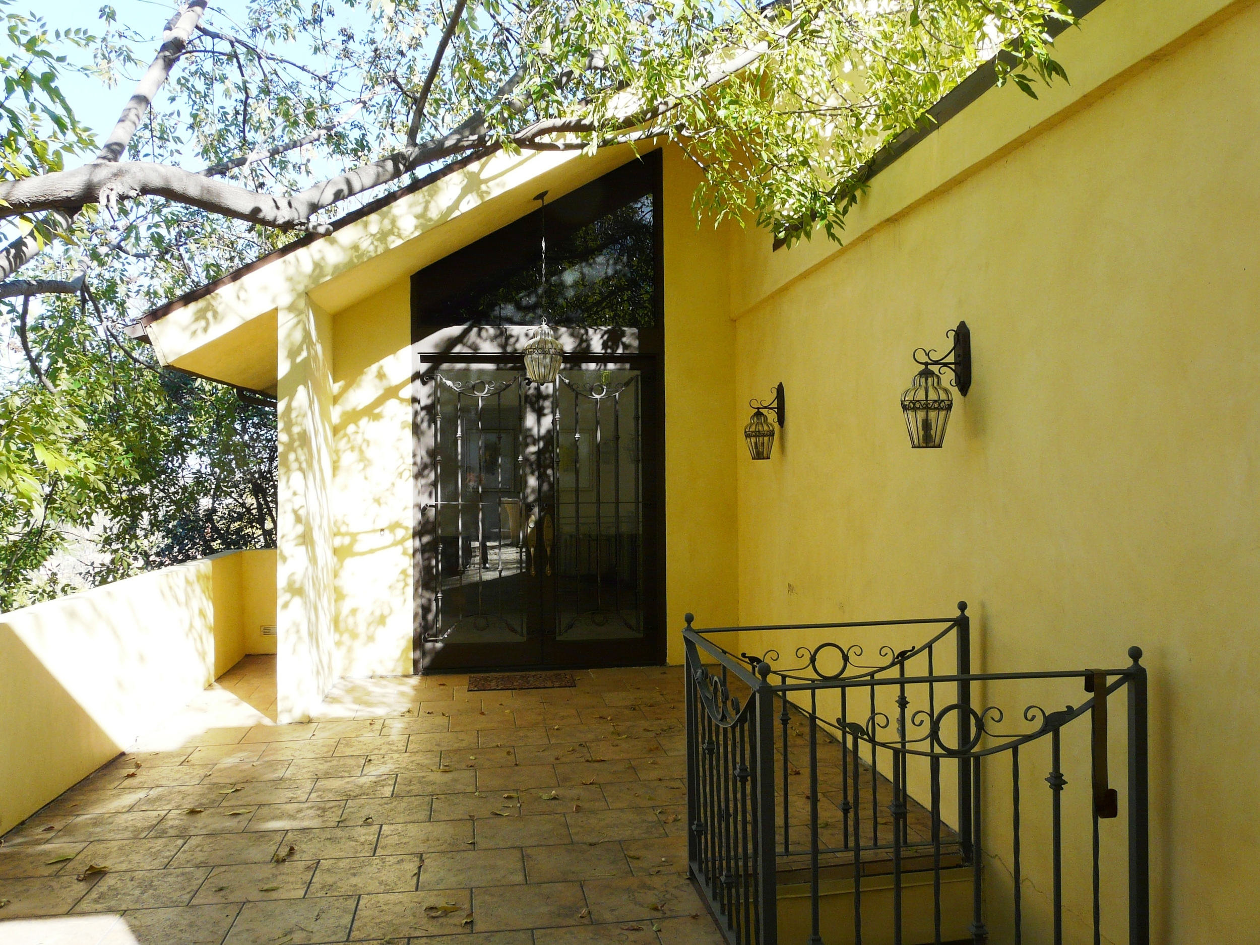 South of the boulevard Spanish home with modern flair plus views and privacy galore. This home features a double door entry that leads to a courtyard and an inviting formal foyer. The main floor is an open floor plan with, a formal dining room, formal living, and family rooms all with dark wood floors, high ceilings, and walls of glass. The updated entertainer's kitchen has Granite counters, Bosch appliances including 2 dishwashers and a Wolf range plus 3 ovens and a stainless sub-zero fridge. There are several dining options including the breakfast bar, Al fresco dining on the patio, or the formal dining room. There are 6 bedrooms including the formal master suite with mountain views, fireplace, huge walk-in closet, full bathroom with double sinks, a spa tub, and a separate shower. The bottom floor has 4 bedrooms all of which have Jack and Jill bathroom set-ups. The back yard has a large tiled patio with a wet bar and a full outdoor kitchen plus a cabana, a large pool, and spa plus a private bathroom for the pool. All this plus; central vac, 3 car garage with direct entrance, wet bar, 4 fireplaces, dog run, and several balconies/patios with valley views.